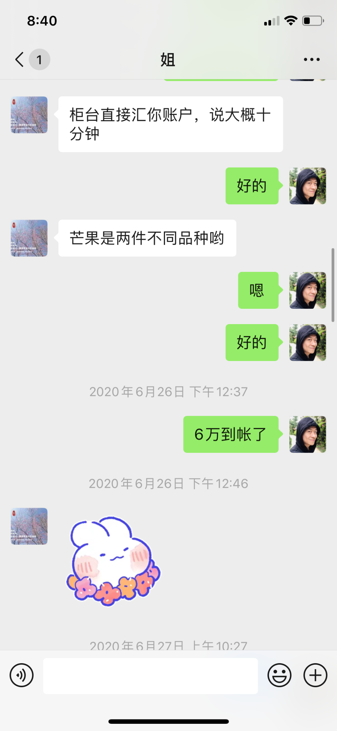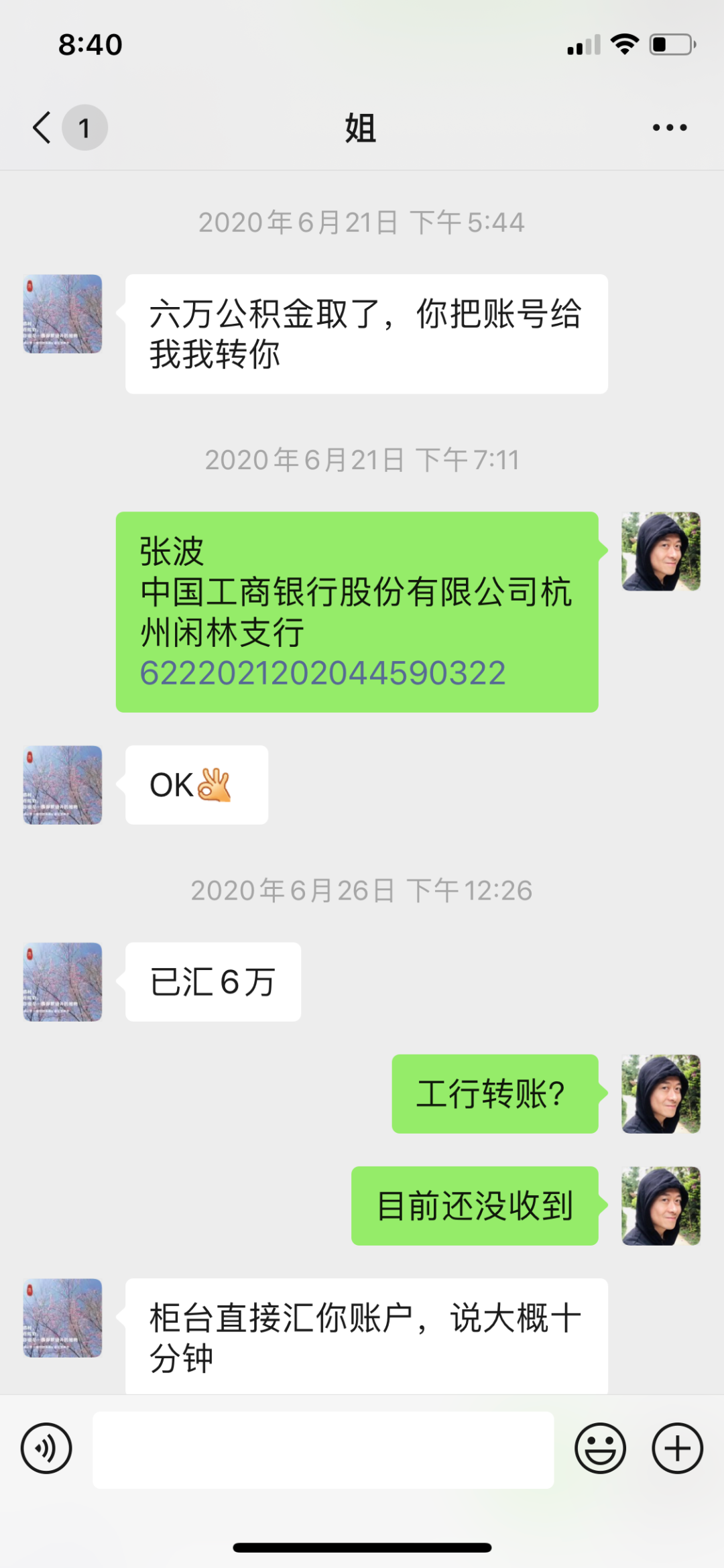 今年1月,春节过年时,她跟我说:她有一点点公积金,大概6万,想给我追加。我就说,8着急,2月8用给我,3月8用给我,4月8用给我,5月8用给我,6月大部分时间也8用给我,6月下旬给我,就来得及。